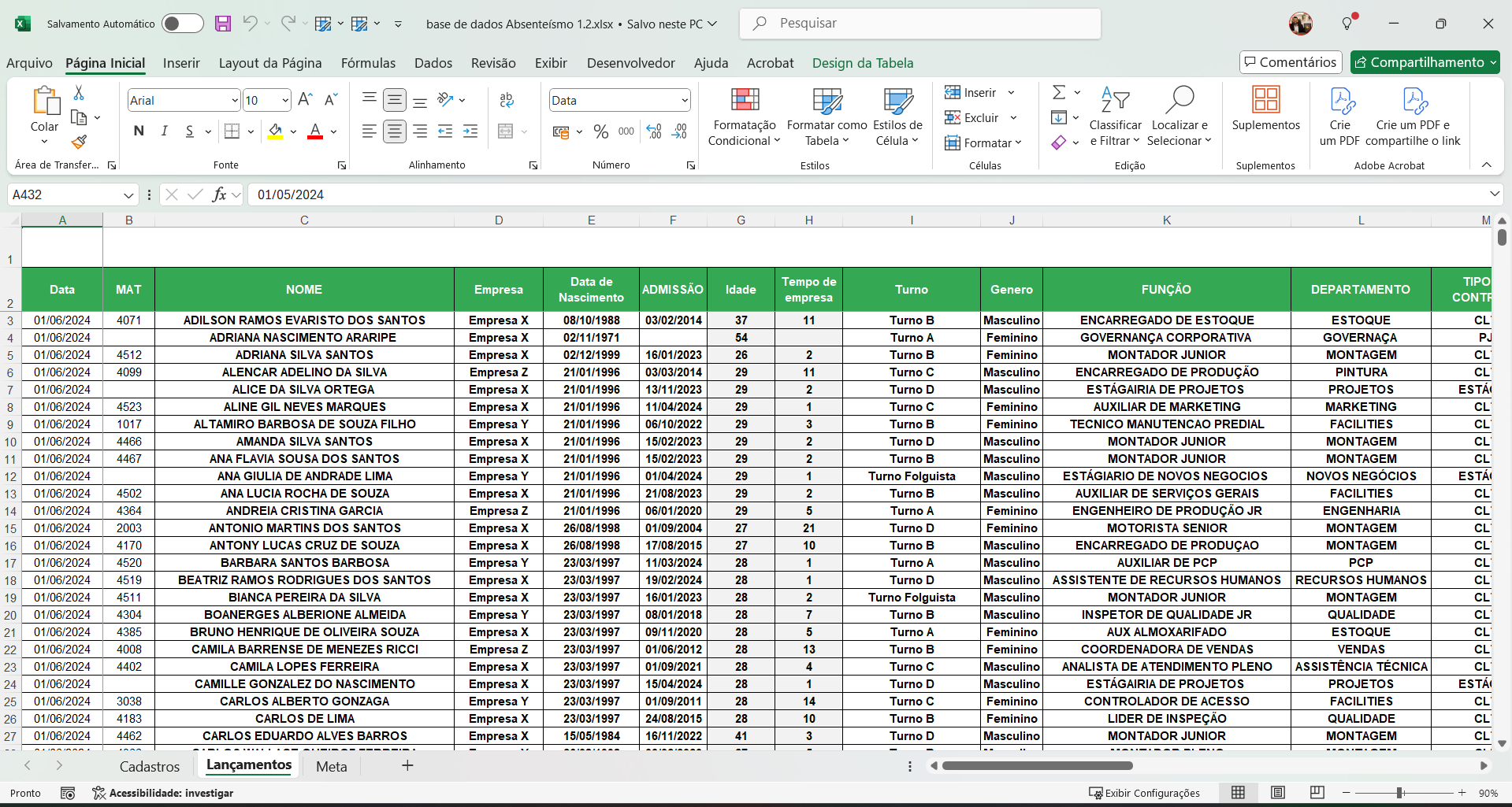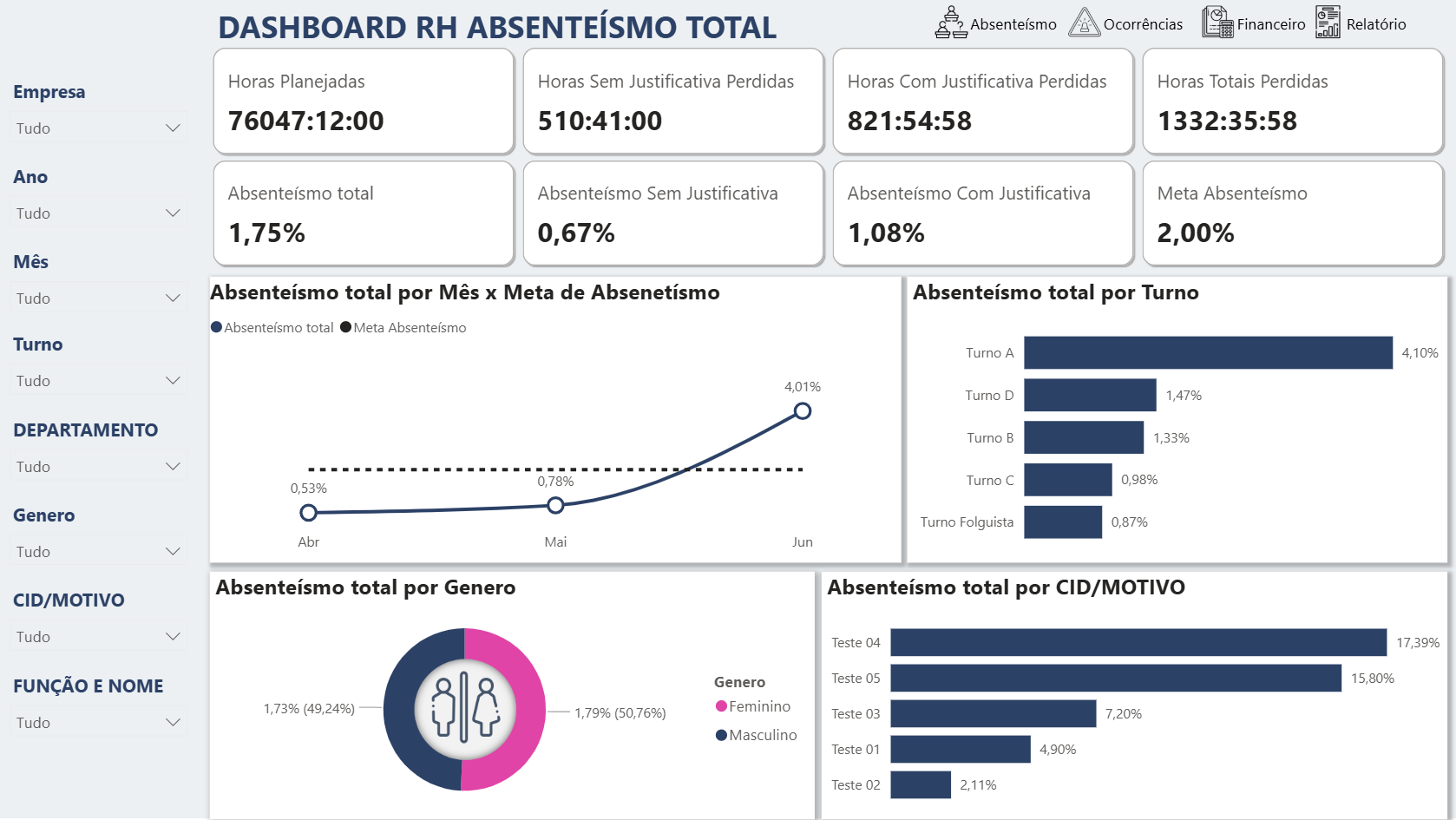 ✅ Análises por Turno, Departamento e Gênero – visualize indicadores detalhados que permitem identificar setores e grupos com maiores índices de ausência.
