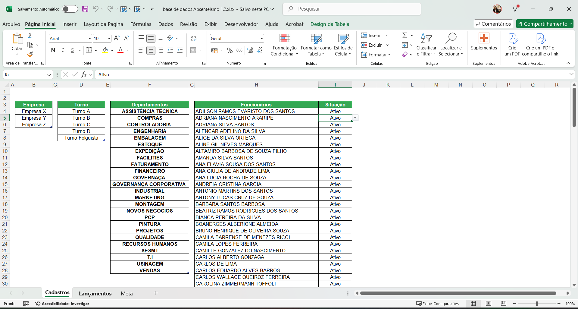 ✅ Perfil dos Funcionários – cadastro detalhado com dados como empresa, função, turno, tempo de empresa e situação atual.