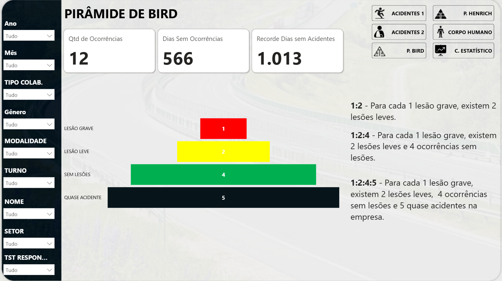 O Dashboard Controle de Acidentes 1.2 no Power BI é uma solução completa para gestão e monitoramento de ocorrências de segurança do trabalho, oferecendo uma visão detalhada e estratégica sobre os acidentes e incidentes na sua empresa.