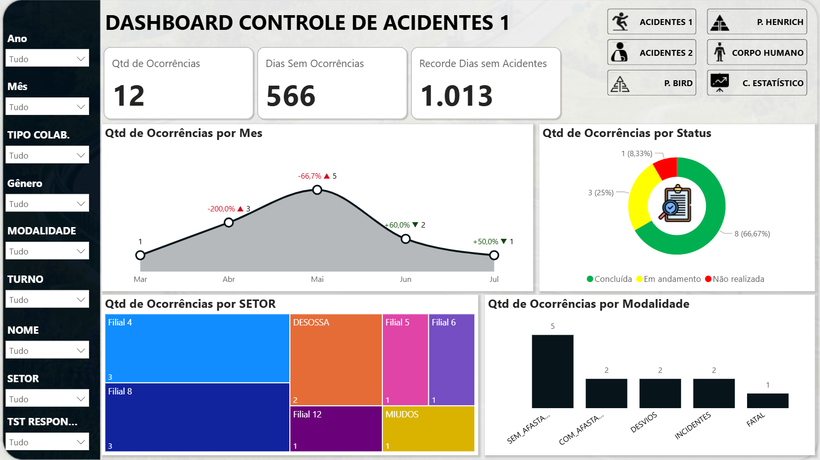 Dashboard Controle de Acidentes 1.2 no Power BI