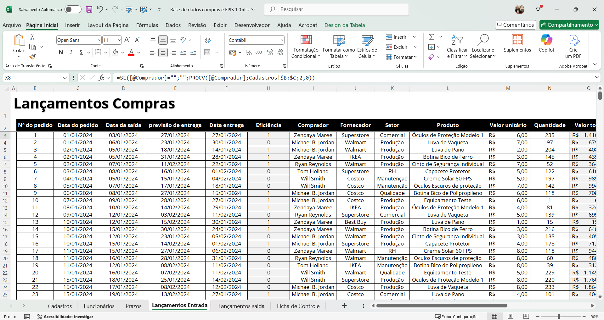 Dashboard Controle de EPIs e Compras 1.0 no Power BI
