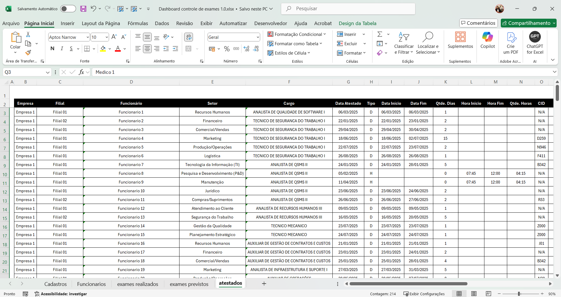 Dashboard Controle de Exames e Atestados 1.1 no Power BI – Gestão de Saúde Ocupacional Completa
