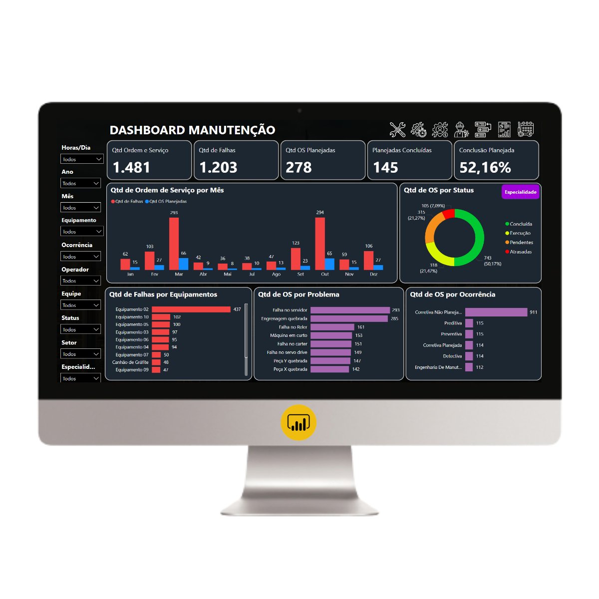O Dashboard de Manutenção 3.1 no Power BI é a ferramenta ideal para empresas que buscam controle completo e gestão inteligente da manutenção industrial. Com relatórios dinâmicos e visuais, você terá acesso a informações críticas para reduzir custos, aumentar a disponibilidade dos ativos e otimizar processos de manutenção corretiva, preventiva e preditiva.